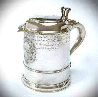 Tankards of this size are seldom found especially with its superb condition and particularly with such an interesting provincial dedication. Timothy Ley was a specialist maker of tankards and mugs although we have not found another 4 pint example by him.