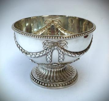In Robert Rowe's defining monograph entitled "Adam Silver" he states on p.39 "To Louisa Courtauld and George Cowles neo-classicism seems quickly to have become a natural way of expressing themselves as artists. They had an extraordinary knack of using a charming variation on a familiar motif in just the right place and of contrasting an area of decoration with the most complimentary amount of plain surface". So it is with this charming bowl. The weight and quality are both above average and it has that delightful combination of noteworthy but restrained ornament. As someone commented "this work is like Hester Bateman on steroids" ! . We wouldn't go that far but we got their drift.
